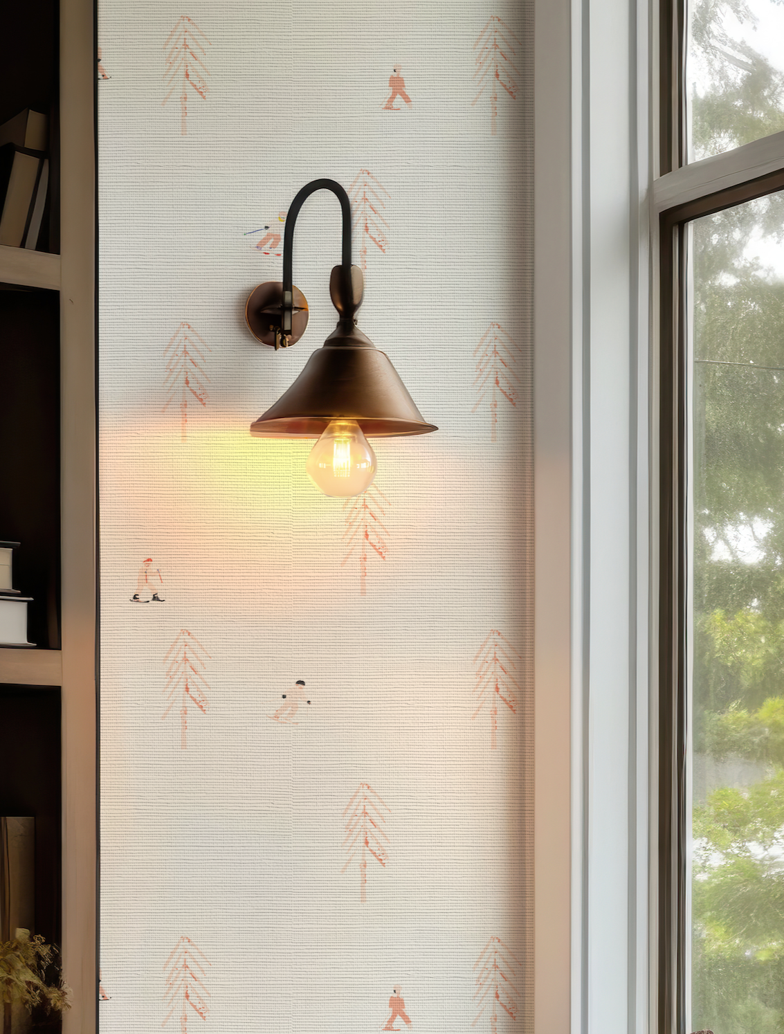 Bring the ski slopes home with this beautifulSki Day Girl on White Wallpaper. Perfect for nurseries and kids' rooms, the delightful peach and pink ski and tree icons give any space a lively and cheerful atmosphere. Make snowy days come alive with Willow + Wild!