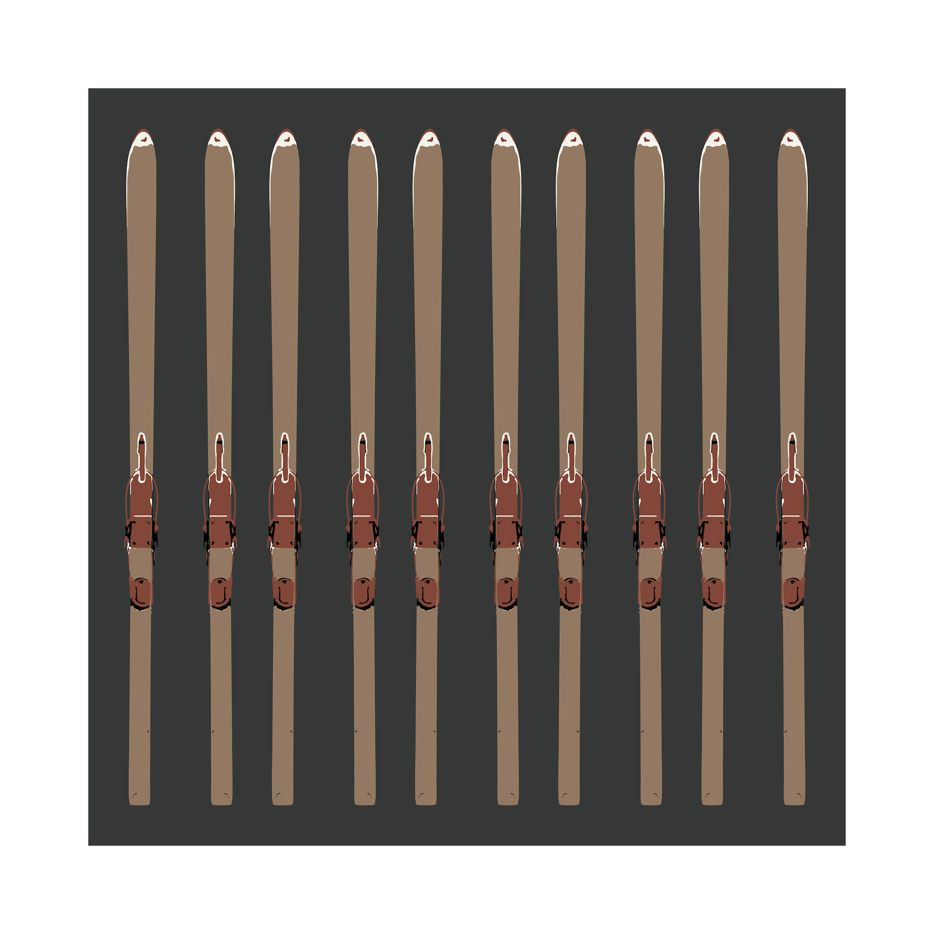 We offer this ski art, and its companion pieces, on Fine Art Paper or Textured Grasscloth Paper.