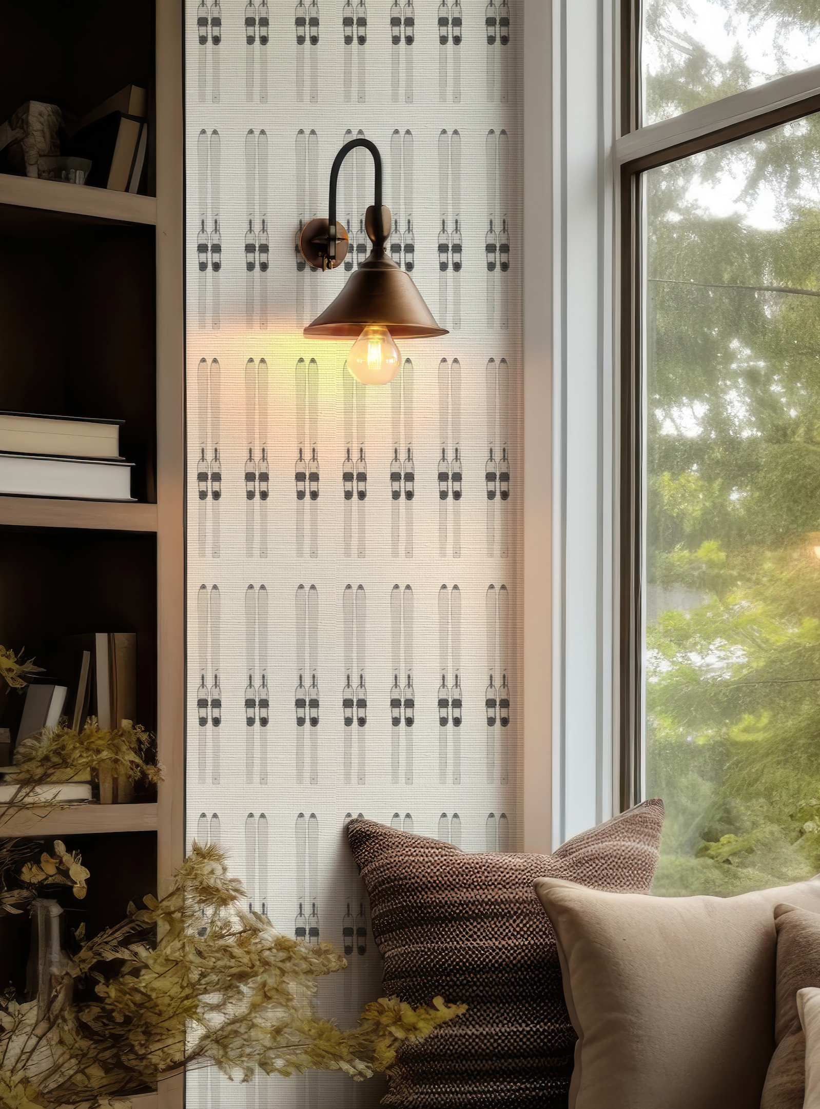 This Ski Stripe Wallpaper is perfect for adding a luxurious mountain feel to any room! The skis, grey with black details, stand out against the off white background for a modern, yet timeless look. Bring the beauty of the mountains to your space with this gorgeous Willow + Wild wallpaper.