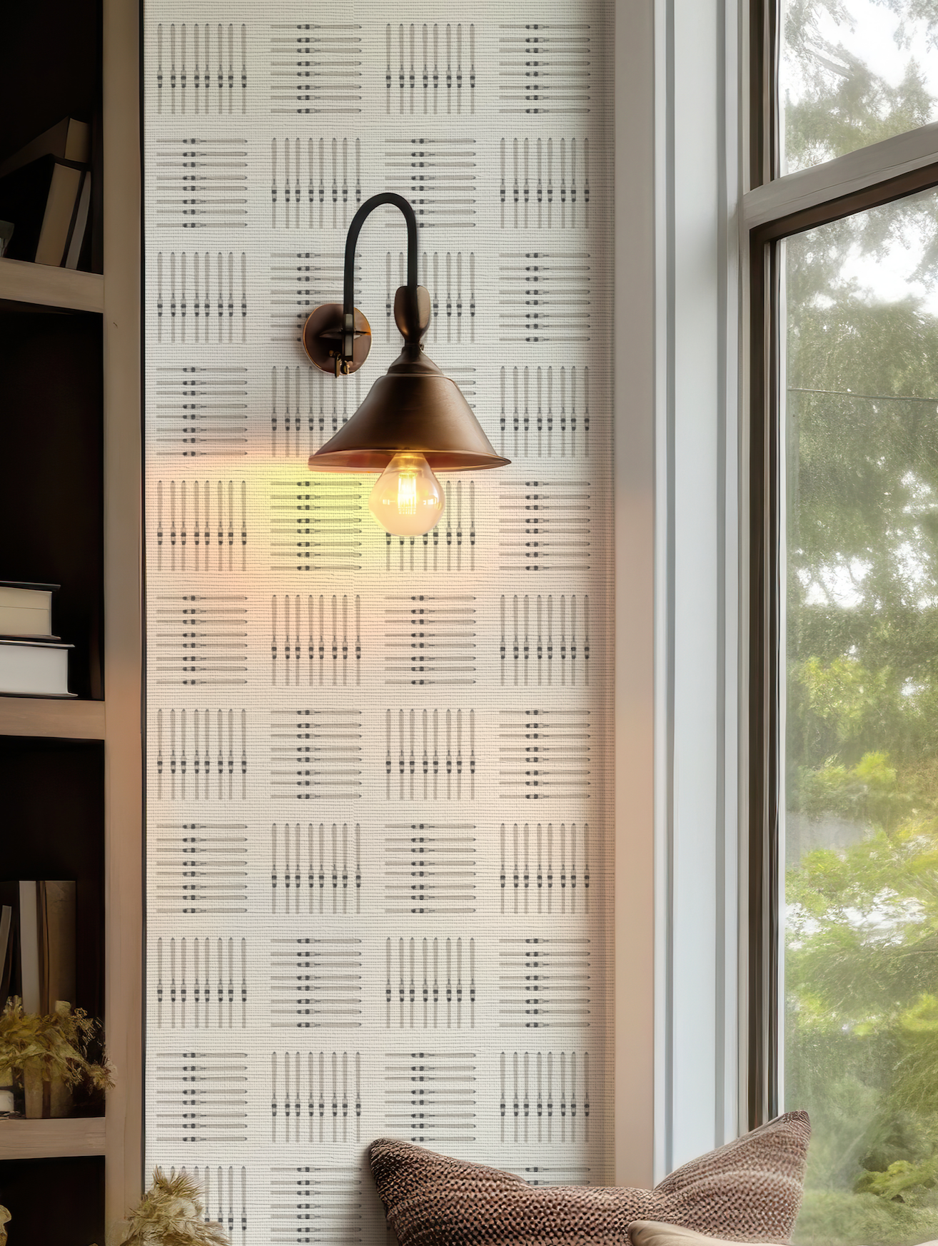 Make winter magic with the Taupe Ski Square on White Wallpaper. Featuring a beautiful mountain luxe style, the skis are khaki beige on a white background from Willow + Wild design. Brighten up your space with this stunning wallpaper.